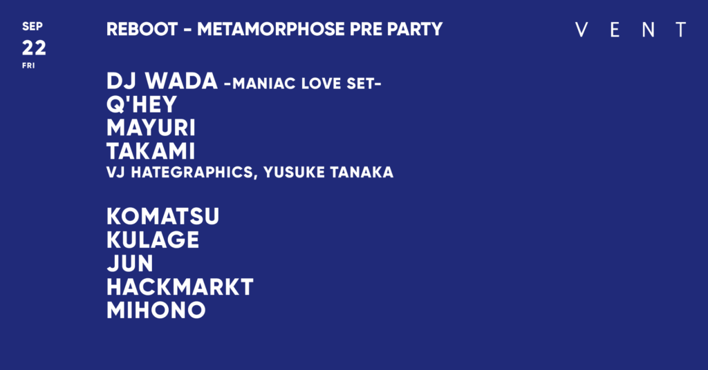 11年ぶりに開催が決定した「METAMORPHOSE 」のプレパーティーがREBOOTとして開催される