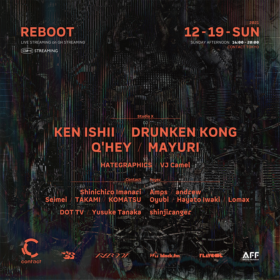 今回レジデントDJのQ’HEY、MAYURI、TAKAMI、KOMATSUに加えて出演するのは、REBOOTとの相性が抜群で1月の開催時にもトリを務めてくれたKen Ishii。自身のレギュラープログラム「Art of Operation」において、Q’HEYとの6台のプレイヤーとPioneerDJのミキサーV10を駆使したB2Bセットが鮮烈だった。